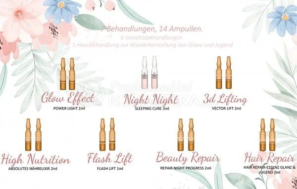 7 ošetření, 14 ampulí, 6 pleťových ošetření