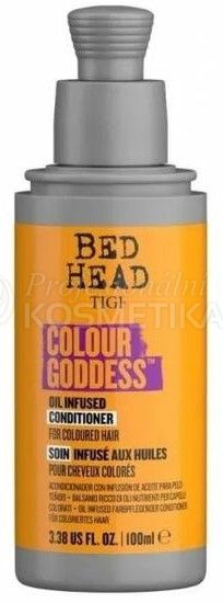 TIGI Bed Head Color Goddess Conditioner pro barvené vlasy. Pečující olejový kondicionér pro výrazné barvy, které nenudí. Vysoce účinné složení obsahuje keratin, Provitamin B5 a olej se zvláčňujícími složkami, který chrání vlasy proti vyblednutí, zabraňuje vzniku statické elektřiny a poletování. Barvené vlasy získají elektrizující brilantní barvu. Olej ze sladkých mandlí, který je bohatý na antioxidanty a vitamíny a kokosový olej ošetřují a vyživují barvené vlasy.