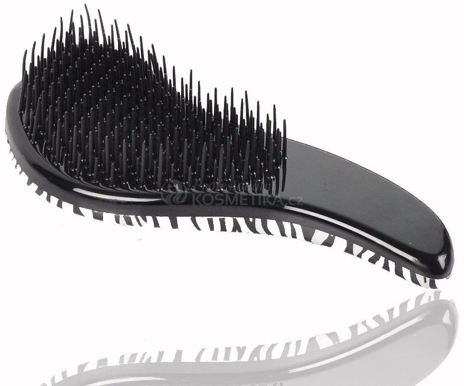 Detangler kartáč na vlasy s rukojetí pogumovaný Zebra - Bílo-černý