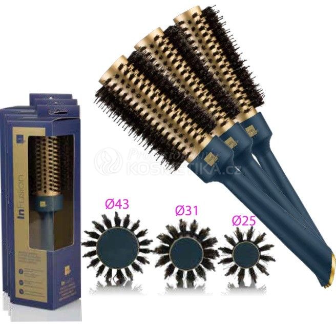 Kartáč InFusion je složen z přírodních kančích štětin smíchaných s nylonem, které jemně tvarují vlasy a zaručují perfektní přilnavost