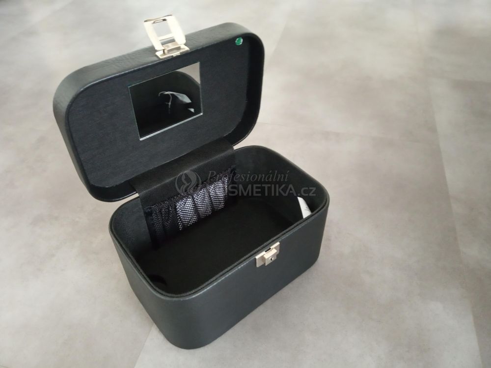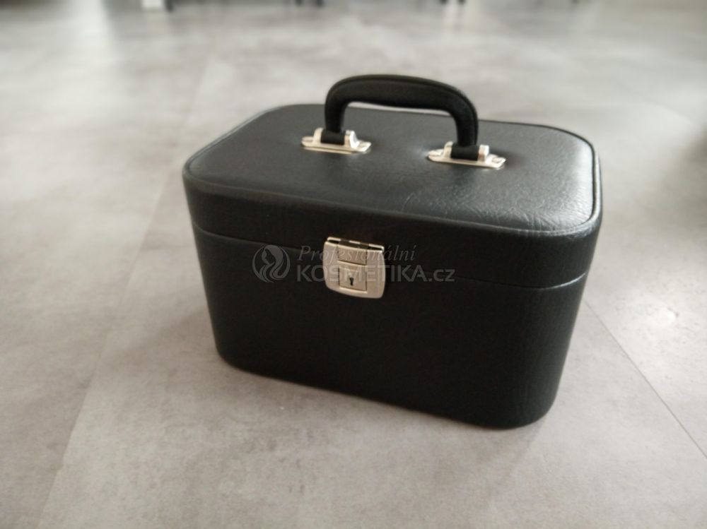 Kosmetický kufřík pouze v černé barvě je vyroben z nylonu s uzavíráním na jeden skolopový zámeček. Ve víku kufříku je zrcátko a ve spodní části jsou poutka z gumy a nastavitelná poutka z koženky. Rozměry: 30 x 20 x 18 cm.