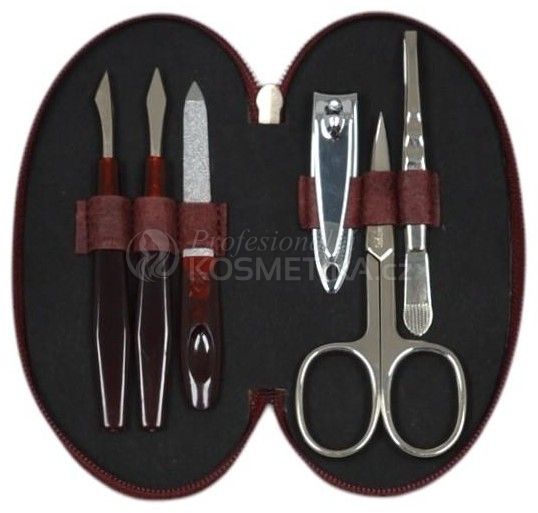 Manikúrní sada 6-ti dílná z bordové koženky. Uzavírá se na zip.