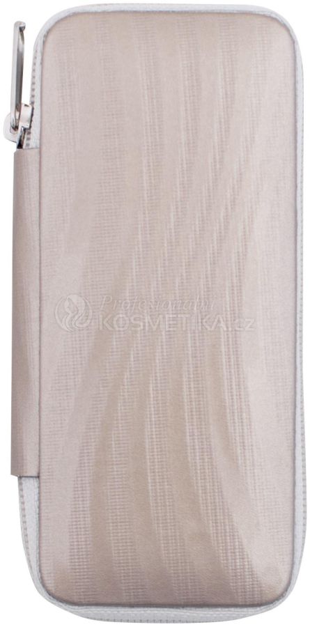 Manikúrní cestovní set s náčiním DUP. Pouzdro je ušito z béžové lesklé koženky .