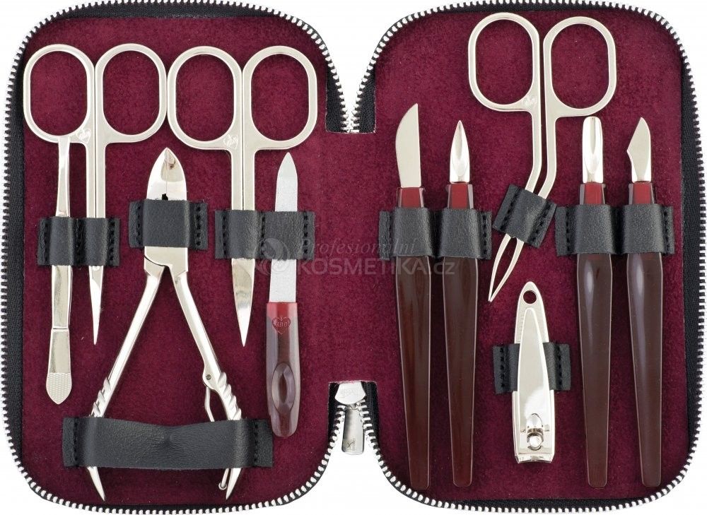 Rodinná plně vybavená 11-dílná manikúrní sada je vyrobena z černé kůže , obsahuje náčiní značky DUP a uzavírá se kvalitním zipem YKK. Je vhodná pro domácí i profesionální péči o nehty. Rozměry: 15 x 10 x 2 cm.