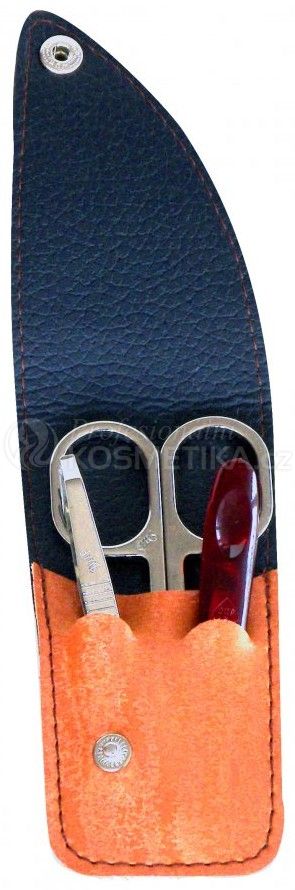 - Malý 3-dílný manikúrní set je vyroben z růžové nebo skořicové koženky, uzavírá se na druk.