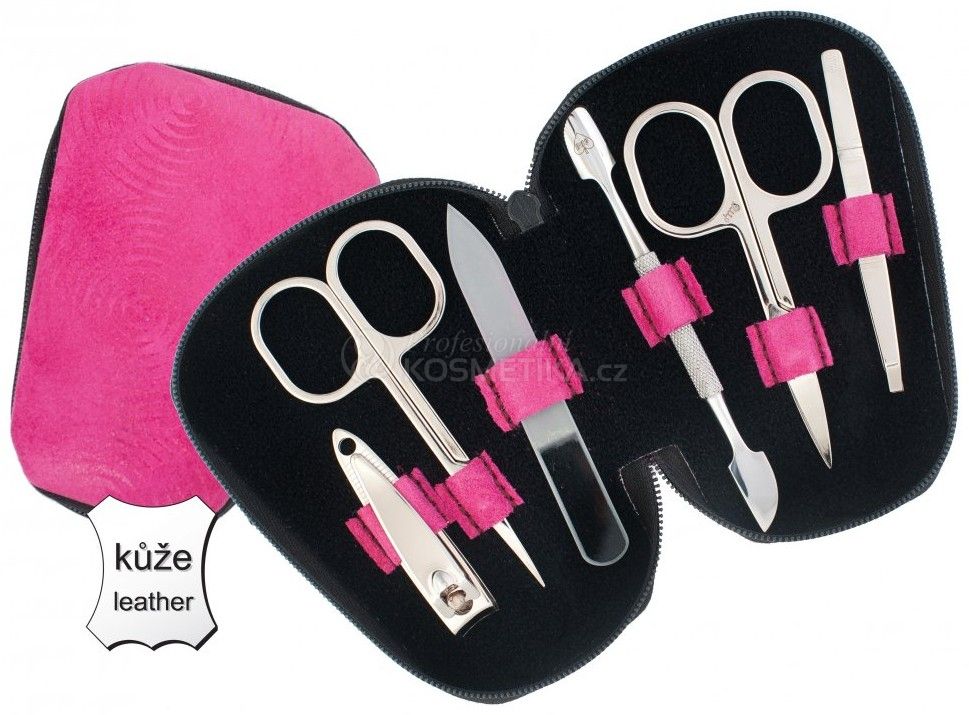Manikúrní sada 6-dílná je vyrobena z kůže v růžové barvě.