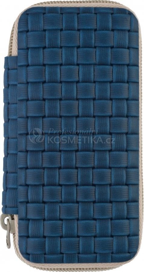 Elegantní kožený manikúrní set modré barvy plastického vzoru.