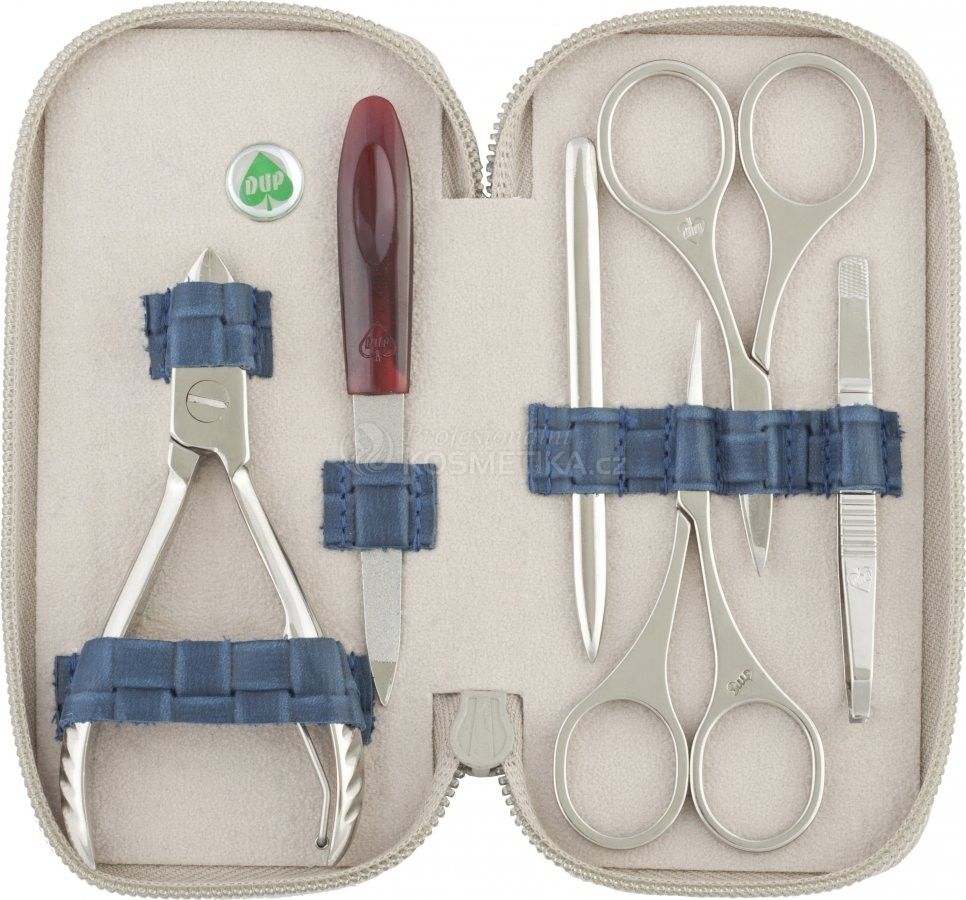 - Je naplněn manikúrním náčiním značky DUP.