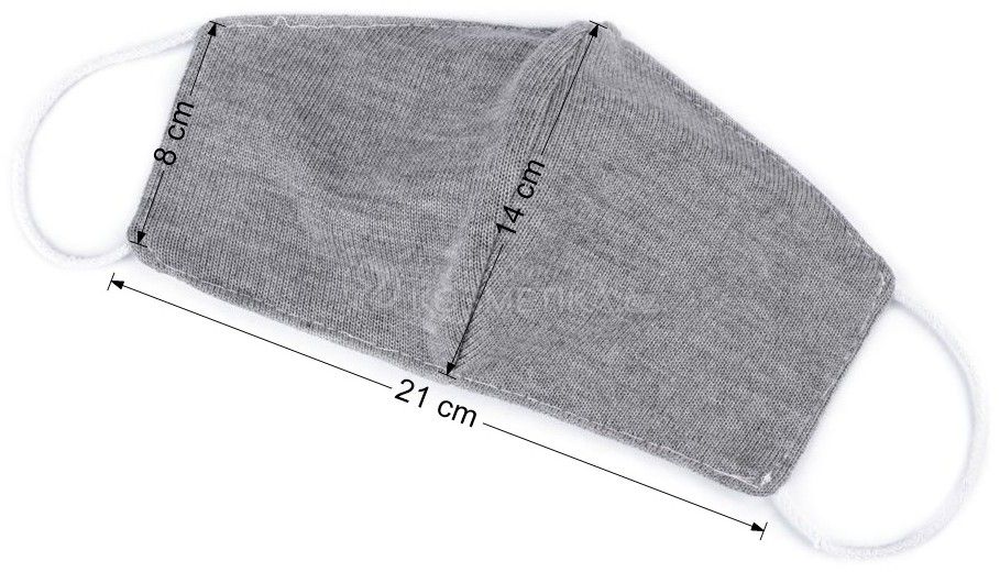 Rouška z bavlněného úpletu je dvouvrstvá. Po stranách jsou pruženky, které za ušima dobře drží.