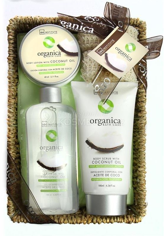 Aquarius Organica Bath Set Kokos - Sprchový gel 188ml + Tělové mléko 180ml + Tělový peeling 60ml + Sisalová houbička 1ks Dárková sada
