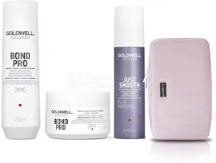 Goldwell Dualsenses Bond Pro Vánoční Set - Šampon 250ml + Maska 200ml + Balzám pro narovnání vlasů Flat Marvel 100ml + Neceser + Dárková sada