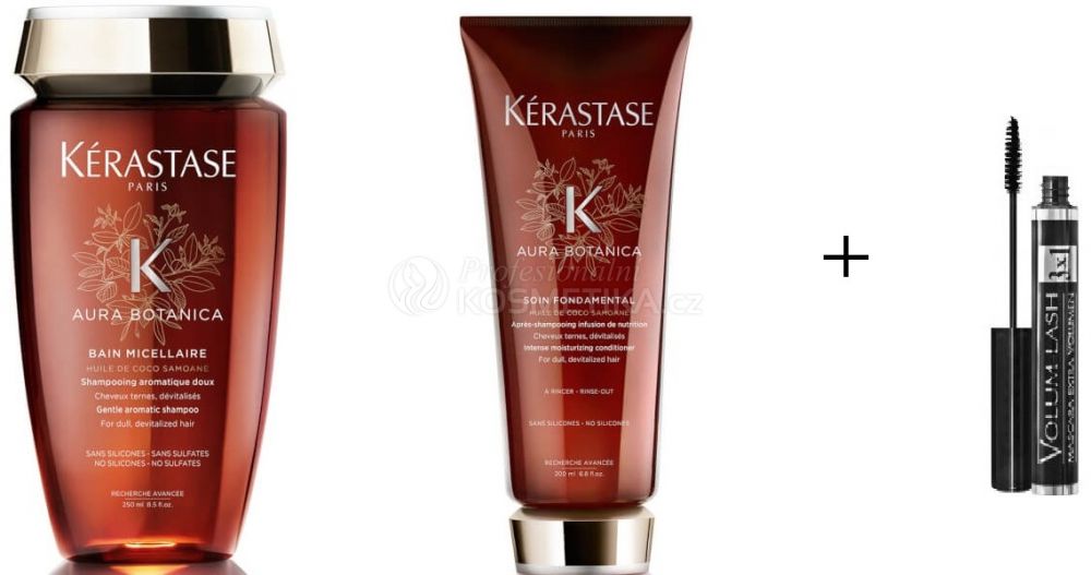 Kérastáse Aura Botanica set - Šamponová lázeň 250ml + Hydratační hloubková péče 200ml + řasenka 16ml Dárková sada