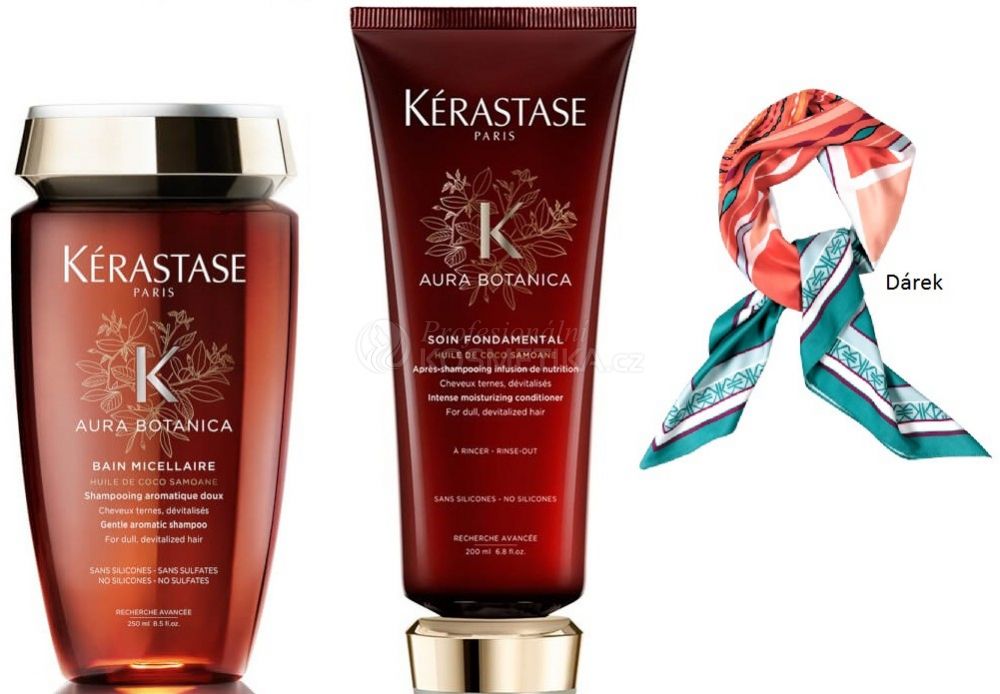 Kérastase Aura Botanica Summer Set - Jemný šampon 250ml + Hydratační hloubková péče 200ml + Módní šátek Dárková sada