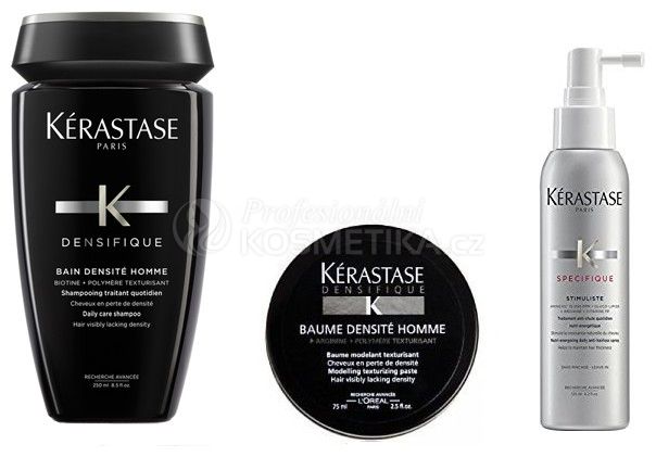 Kérastase Densifique Homme Vánoční sada - Osvěžující a zpevňující pánský šampon 250ml + Modelující a matující pasta 75ml + Nutri-energetická péče proti vypadávání vlasů 125ml Dárková sada