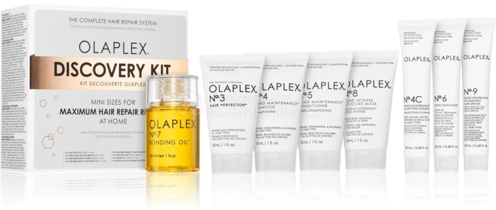 Olaplex Discovery Kit Set - No.3 hair Perfector 30 ml + No.8 maska 30 ml + No.4 šampon 30 ml + No.5 kondicionér 30 ml + No.4C šampon 20 ml + NO.6 20 ml + No.7 olej 30 ml + NO.9 sérum 20 ml Dárková sada