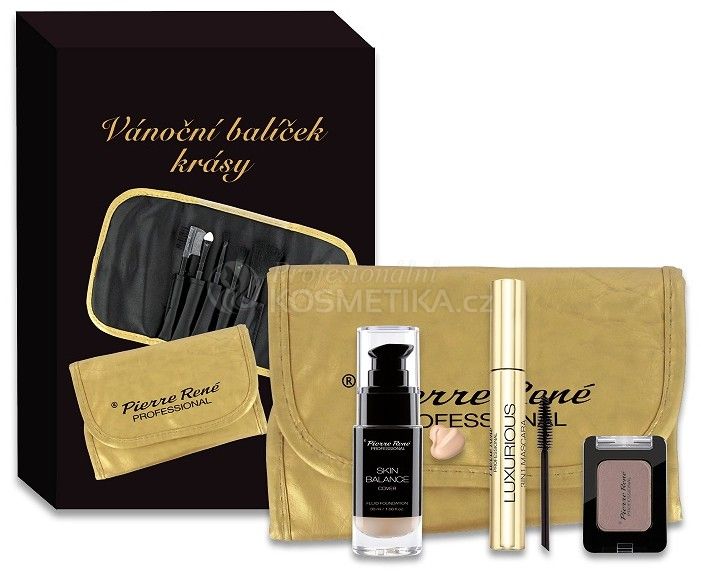 Pierre René Vánoční balíček krásy č.40 - Řasenka 3v1 + Make-up + Oční stíny + Zlaté pouzdro se štětci Dárková sada