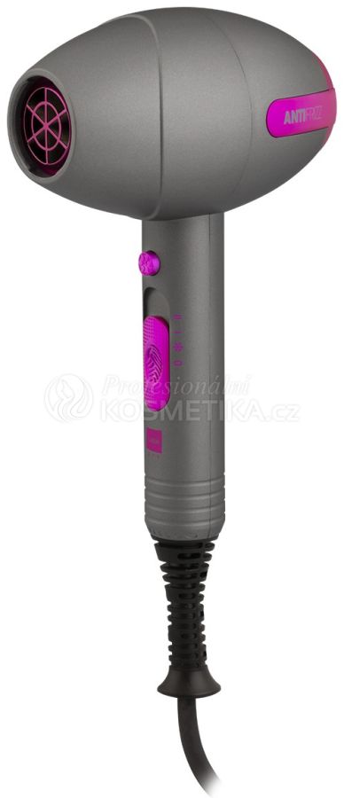 Anti-Frizz je první profesionální vysoušeč vlasů speciálně navržený pro kudrnaté nebo krepaté vlasy. Integrované ionizační zařízení proti krepatění Anti-Frizz Action provádí dvě akce: uvolňuje shluky iontů, které upravují elektrostatický náboj vlasů a zkracují dobu sušení bez poškození vlasů.