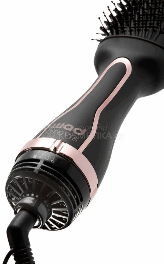 Oválný horkovzdušný kartáč s výkonným motorem až 1000 W dodá Vašim vlasům objem, uhladí a narovná je, či s ním můžete vytvářet vlnité styly účesů. Keramicko-turmalínový povrch kartáče rovnoměrně distribuuje teplo, urychluje styling a je díky tomu také k vlasům šetrnější, dodává jim lesk a potlačuje jejich krepatění. Dva druhy štětin zajistí pročesání vlasů a jejich současné uhlazení. Kartáč disponuje třemi režimy foukání - nízký stupeň rychlosti a teploty vzduchu pro jemné, poškozené a barvené vlasy, vysoký stupeň rychlosti a teploty vzduchu pro normální až husté vlasy a studený vzduch pro zafixování účesu. Ergonomická rukojeť kartáče spolu s 3 metry dlouhým a o 360 ° otočným kabelem a chladnou špičkou zajistí snadnou a bezpečnou manipulaci.