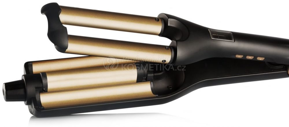 5 nastavitelných, 1,5 až 3 cm velikostí, titanové curlingové trubice různých hloubek, potažené turmalínovou keramikou, rovnoměrně distribuují teplo a vlasům dodávají lesk a hebkost.