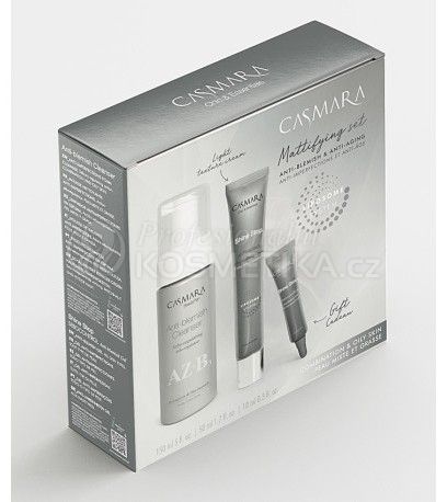 Casmara Shine Stop Mattifying Anti-aging Set - Pěnový odličovač 150 ml + zmatňující krém 50 ml + gel pro lokální ošetření 10 ml Dárková sada