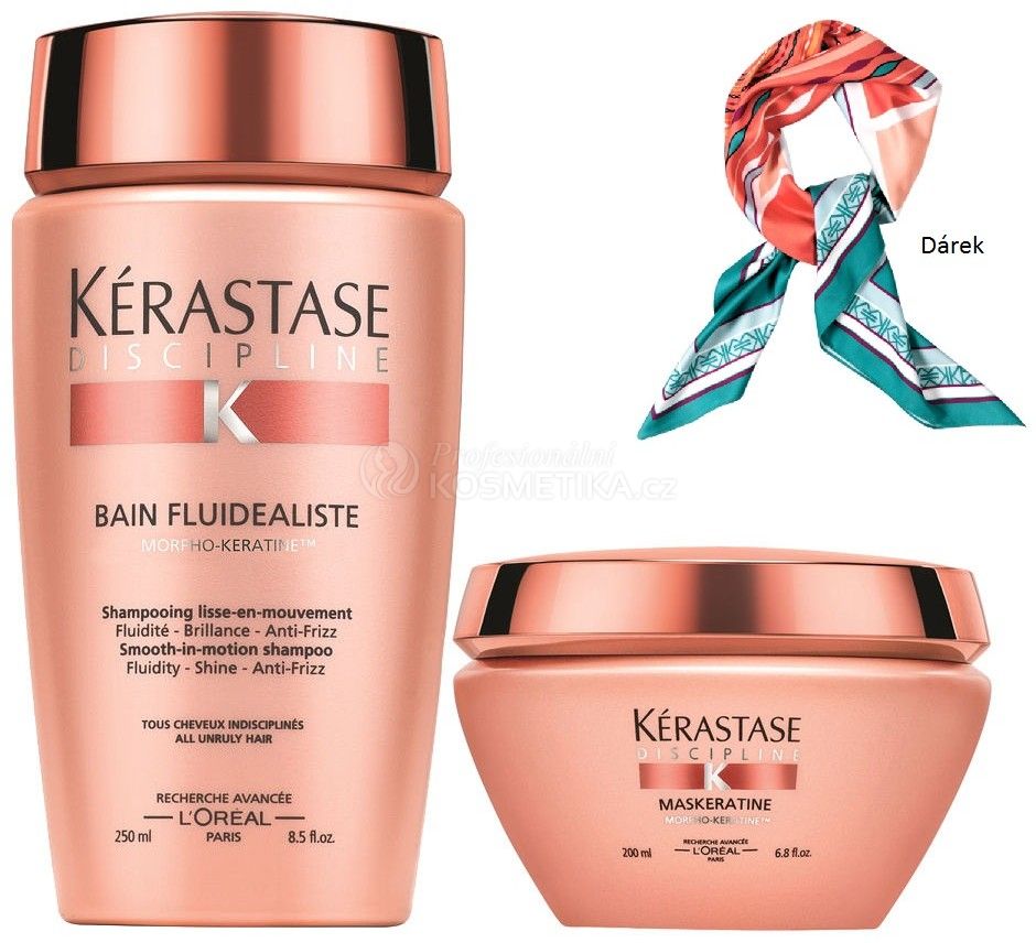 Kérastase Discipline Summer Set 2 - Šampon pro nepoddajné vlasy 250ml + Maska pro nepoddajné vlasy 200ml + Módní šátek Dárková sada