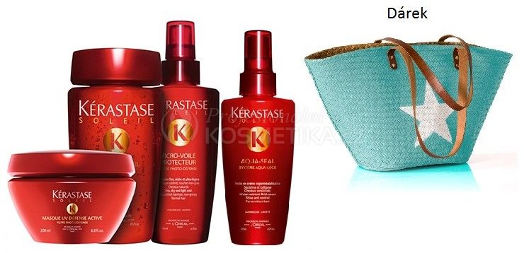 Kérastase Soleil Summer Set - Ochranný šampon 250ml + Regenerační maska 200ml + Ochranný fluid 125ml + Ochranná mlha 125ml + Plážová taška Dárková sada