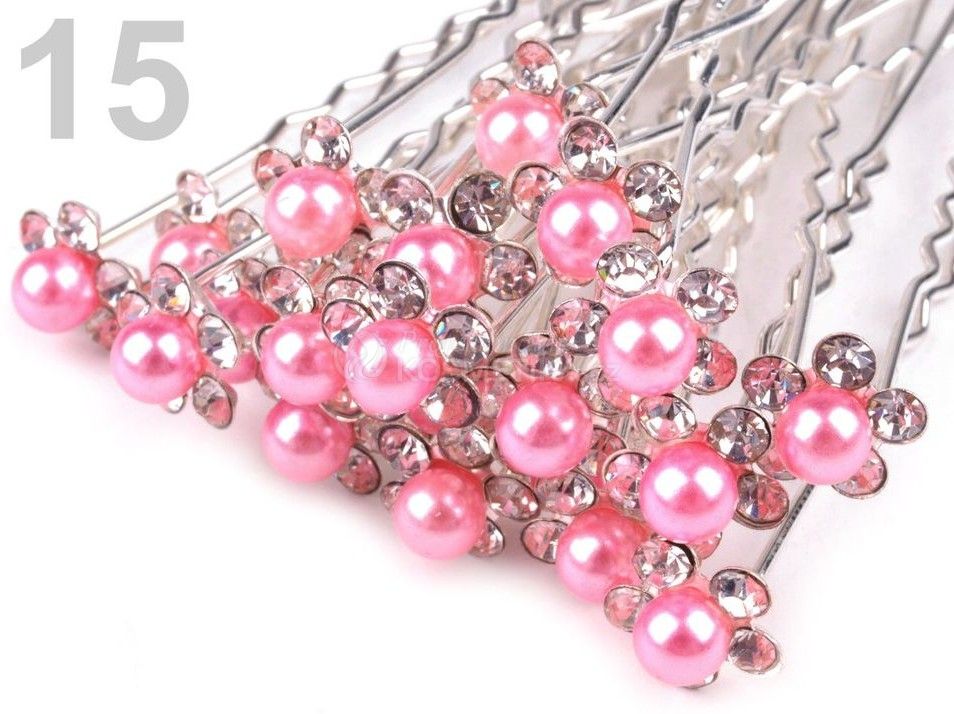 Štrasová vlásenka - květinka s perličkou světle růžová 1ks