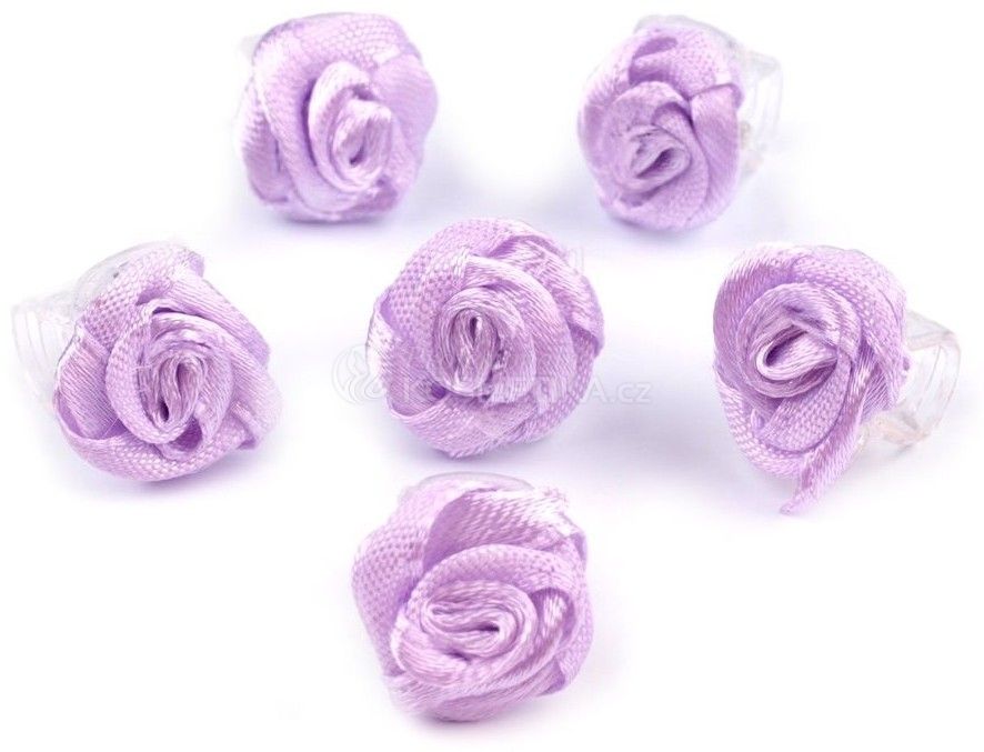 - Jemná textilní růžička uchycená na průhledné mini sponce (skřipci).
