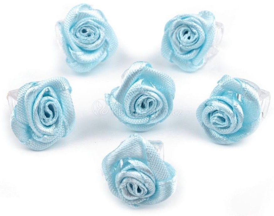 - Jemná textilní růžička uchycená na průhledné mini sponce (skřipci).