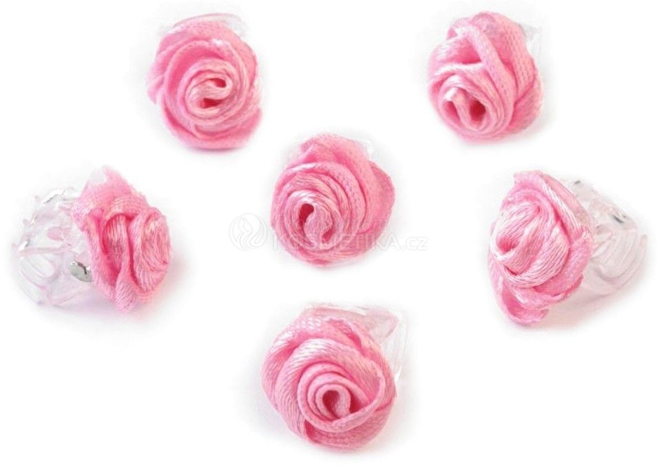 - Jemná textilní růžička uchycená na průhledné mini sponce (skřipci).