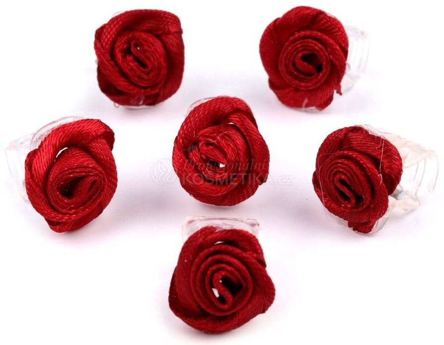 - Jemná textilní růžička uchycená na průhledné mini sponce (skřipci).