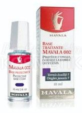 Ochranný podkladový lak MAVALA 002 má dvojitým účinkem: vytváří ochranou bariéru, která nehty chrání a posiluje a tak prodlužuje trvanlivost laku. Díky svojí přilínavé konzistenci poskytuje MAVALA 002 dvě výhody: izoluje nehty od barevných pigmentů z laků a zároveň zlepšuje chytlavost laku. Nehty budou krásně nalakované po delší dobu.