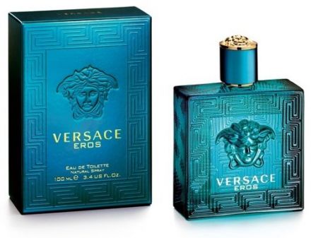 Cílem parfému je odhalit a uvolnit neomezenou vášeň a touhu. Vůně byla pojmenována po řeckém bohu lásky, synovi bohyně Afrodity. Parfémy značky Versace se inspirují starověkým Řeckem jž od svého počátku, kdy Gianni Versace použil bohyni Medúzu jako symbol značky Versace. Eros je čerstvá, aromatická, dřevitá vůně, jejíž flakon je modrý jako Středozemní moře. Parfém byl uveden na trh v roce 2012.