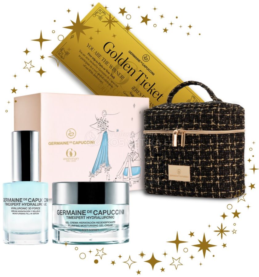 Letos je to 60. výročí značky Germaine De Capuccini, a tak výrobce kromě kosmetických produktů ukryl do 5 limitovaných setů Time To Shine také překvapení na výherní kupón Golden Ticket, který dává šanci vyhrát zájezd do New Yorku nebo Paříže na 4 noci s ubytováním pro 2 osoby a s letenkou.