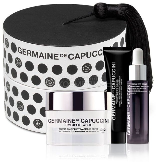 Germaine de Capuccini Timexpert White Vánoční sada - Korekční krém na skvrny SPF 20 50 ml + oční sérum 15 ml + noční reparační sérum 7 ml + kabelka Dárková sada