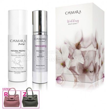 Casmara Wedding Beauty Secrets Vánoční sada 2018 - Regenerační anti-agingové sérum 50 ml + triaktivní peeling 150 ml + kabelka Dárková sada