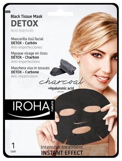 Iroha Black Tissue Mask Detox Charcoal - Látková maska s dřevěným uhlím 23 ml
