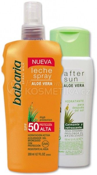 Babaria Sun Leche Solar Sun Milk Aloe Vera - Opalovací mléko s výtažkem z Aloe Vera SPF50 200ml + Mléko po opalování 150ml