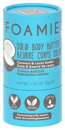 Tuhé tělové máslo s kokosem a kakaovým máslem intenzivně hydratuje pokožku a zanechává ji vyživenou, pružnou a příjemně hebkou. Díky svému praktickému balení nezabere téměř žádné místo a je tak vhodné i na cesty. Tělo příjemně provoní jemnou vůní kokosu. Tuhá tělová péče Foamie Body Butter hydratuje pokožku a zanechává ji příjemně provoněnou, vyživenou a hebkou. Aplikace je rychlá a snadná: zatlačte prsty zespodu balení a vysuňte malou část produktu. Naneste na pokožku a víčkem zatlačte zbytek produktu zpátky do obalu. Ideální je aplikovat máslo po sprše. Produkty jsou hypoalergenní, nejsou testované na zvířatech a složením jsou vhodné i pro vegany