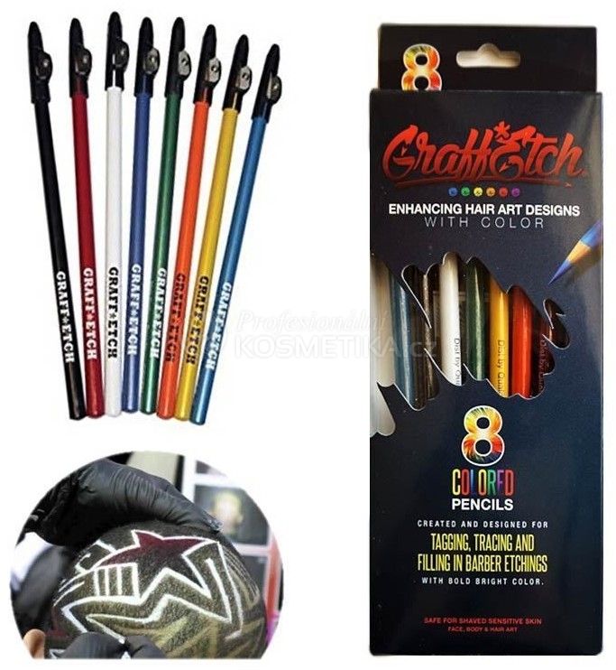 Tužky Graff * Etch jsou produktem navrženým a vyrobeným speciálně pro holičství, který chce spojit to nejlepší z umění tetování vlasů s graffiti.