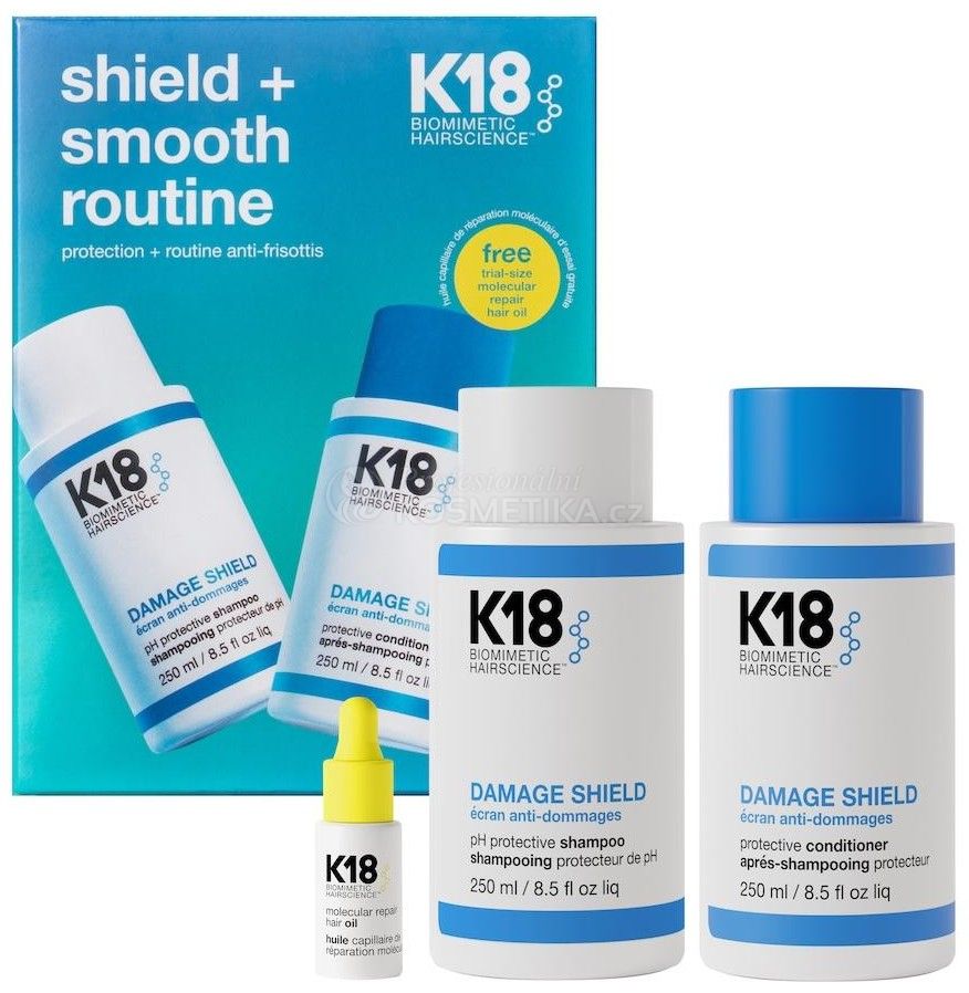 K18 Shield+Smooth Routine - Čistící šampon 250 ml + kondicionér 250 ml + olej na vlasy 4 ml Dárková sada