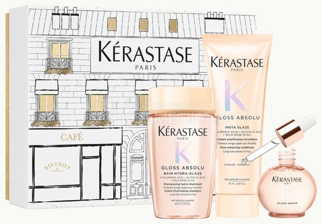 Kérastase Gloss Absolu Trio Vánoční Set - Šampon 80 ml + péče 75 ml + olej 45 ml Dárková sada