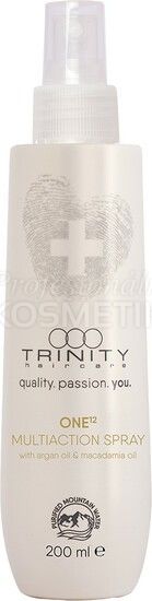 TRINITY haircare therapies přípravek ONE12 s keratinem, arganovým olejem, s makadamovým olejem, olejem Nyamplung a UV filtrem je ideální odpovědí na každou potřebu vlasů. Hloubkově vyživuje s rekonstrukčním účinkem.