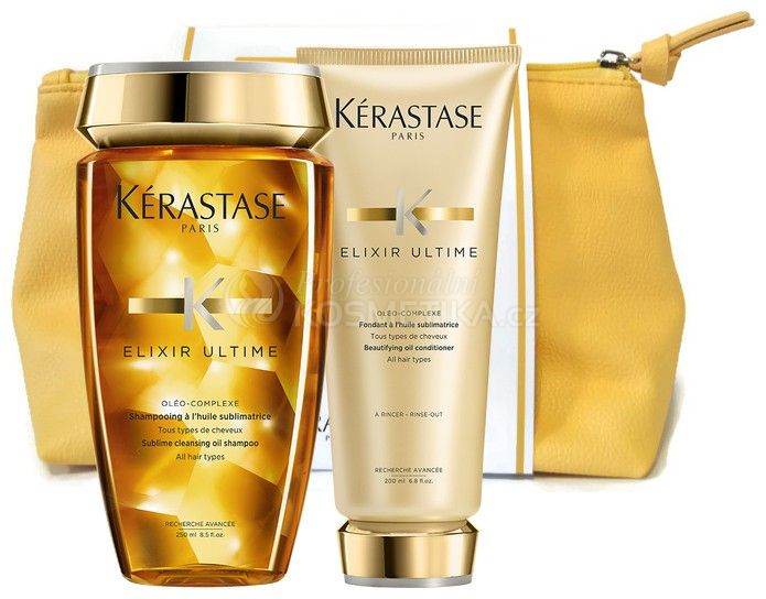 Kérastase Elixir Ultime Set - Luxusní šamponová lázeň 250ml + Vyživující elixír 200ml +Luxusní neceser Dárková sada
