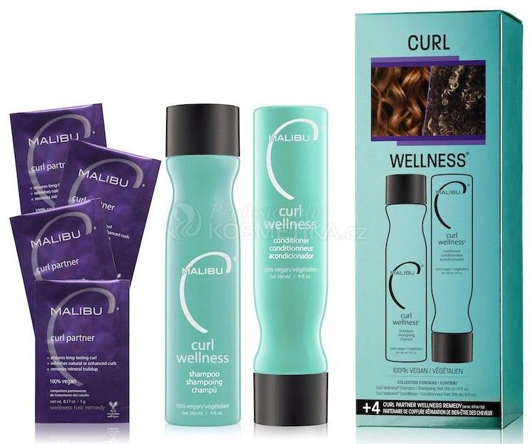 Sada obsahuje šampon 266 ml, kondicionér 266 ml a 4 ks sáčků Curl Partner.