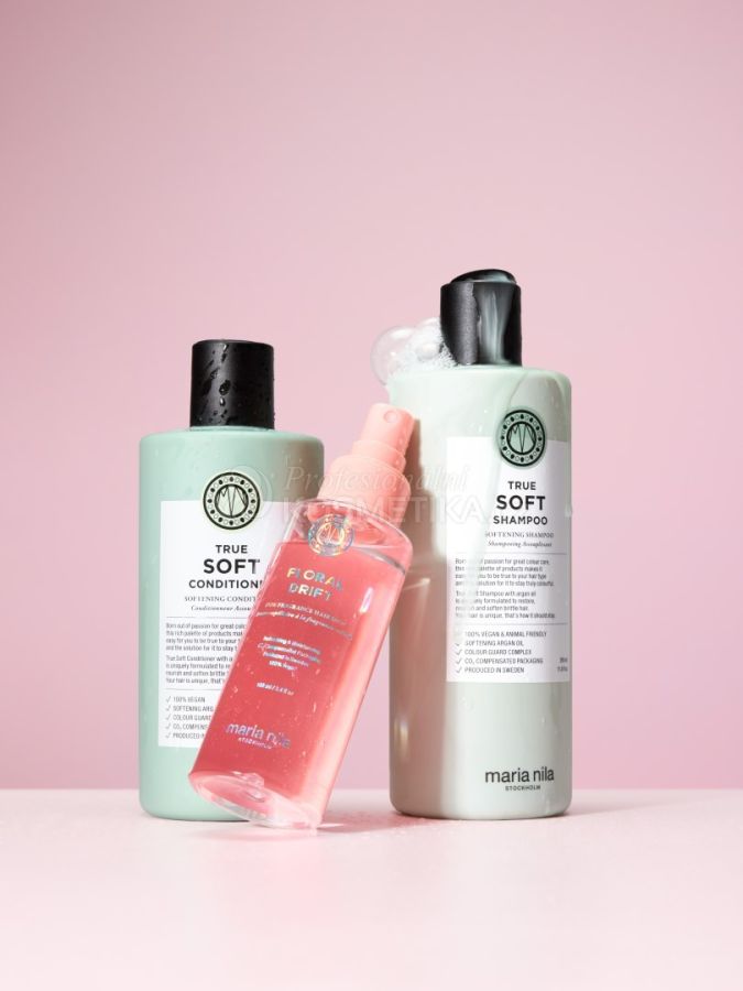 Maria Nila True Soft Holiday 2025 - Hydratační šampon 350 ml + hydratační kondicionér 300 ml + vůně do vlasů 100 ml Dárková sada