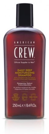 - Daily Deep Moisturizing Shampoo je mycí šampon na vlasy a pokožku hlavy bohatý na kondicionační změkčovadla, která zanechává vlasy jemné po celý den, aniž by způsobovaly hromadění nebo mastnotu vlasů. Ultrahydratační složení čistí, zatímco přirozeně certifikovaná vůně American Crew Citrus Mint dodává energii a povzbuzuje. Tento veganský šampon bez silikonů, nasycený hydratačním vitamínem B5 pro podporu zdravě vypadajících vlasů, je vhodný pro každodenní použití na normální až suché vlasy.