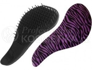 • Detangler kartáč na vlasy s rukojetí pogumovaný Zebra - Fialovo-černý