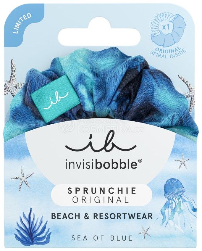 Pohodlná gumička do vlasů Invisibobble® Sprunchie posouvá klasickou scrunchie na novou úroveň. Pod luxusní látkou se schovává pevná spirála, díky níž vlasy drží pohromadě, nevytváří se na vlasech otlak a ani nezanechává stopy. Plavkový materiál látky s modrým potiskem je ideální pro letní období, skvěle se kombinuje s plavkami a lze jej nosit i jako stylový doplněk na plavání, protože nenasákne vodu.