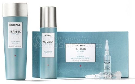 Vlasové tonikum Goldwell Kerasilk Repower Anti-Hairloss Spray Tonic je speciálně navržen proti padání vlasů. Je vhodný pro řídké a slabé vlasy. Vlasový elixír spadá do řady Kerasilk s Keratransform Technology, která obsahuje tři aktivní složky. Minimalizuje působení tepla na vlasy, chrání před poškozením a lámáním, zabraňuje vyblednutí barvy a dodává jim zářivý lesk. Napomáhá ke snadnější úpravě vlasů.